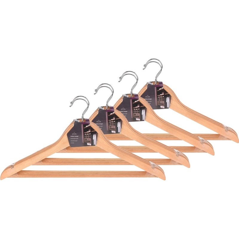 Set van 12 stuks houten kledinghangers met broeklat. Afmeting: ca. 44 x 1 x 22,5 (incl. haak) cm. Kleding/kleren ophangen in hangkast – Kledinghangers van hout. U ontvangt 4 sets van 3 stuks.