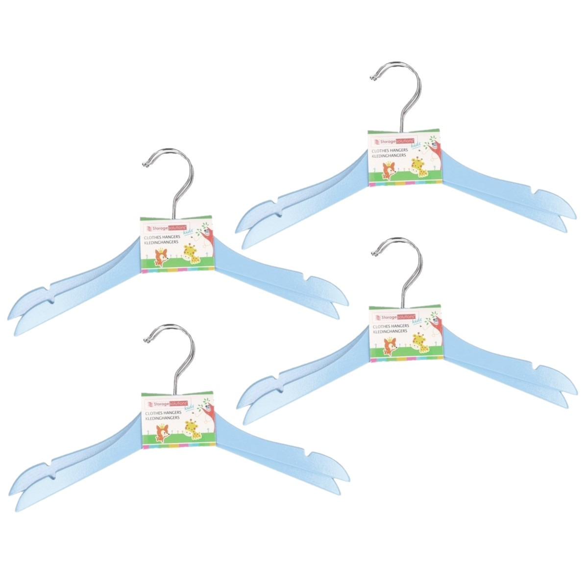24x Stuks stevige kledinghangers voor kinderen, in de kleur blauw. De hangers zijn gemaakt van hout. Afmetingen: 32 x 18 x 2 cm.