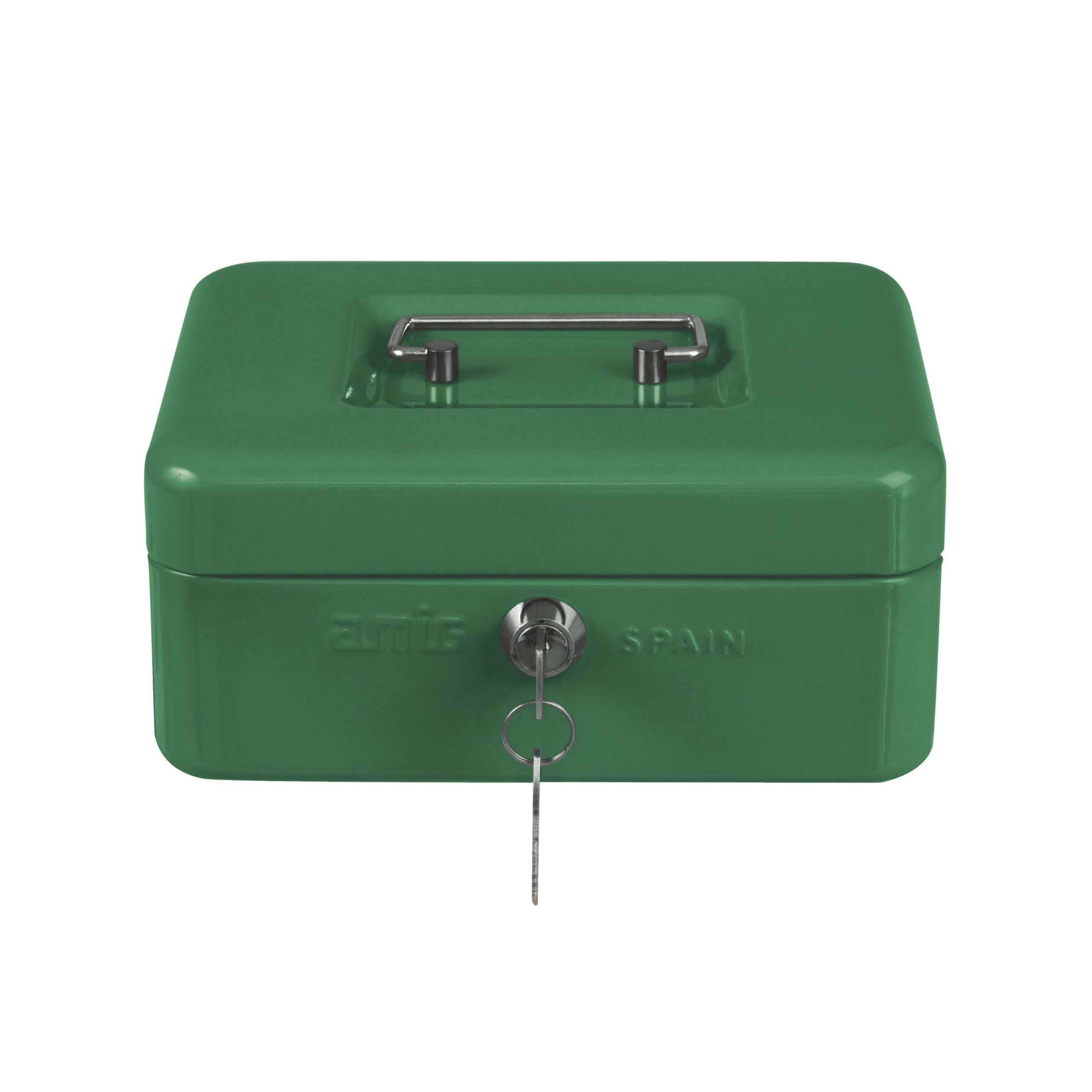 Geldkistje met 2 sleutels – groen – staal – muntbakje – 20 x 16 x 9 cm – inbraakbeveiliging