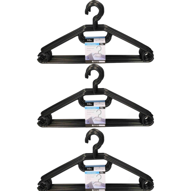 Kledingkast kledinghangers pakket – 30x stuks – stevig kunststof – zwart