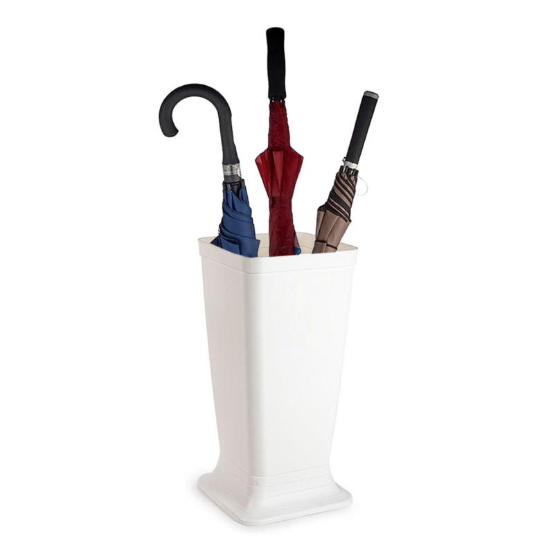 Een parapluhouder/standaard bak Plain met een gladde buitenzijde, gemaakt van stevig kunststof. Handig voor het opbergen en uit laten lekken van de paraplu’s. De houder heeft ruimte voor ongeveer 6 a 8 paraplu’s. Formaat: 26 x 26 x 52 cm. Materiaal: kunststof. Paraplu uitlek opbergbak.