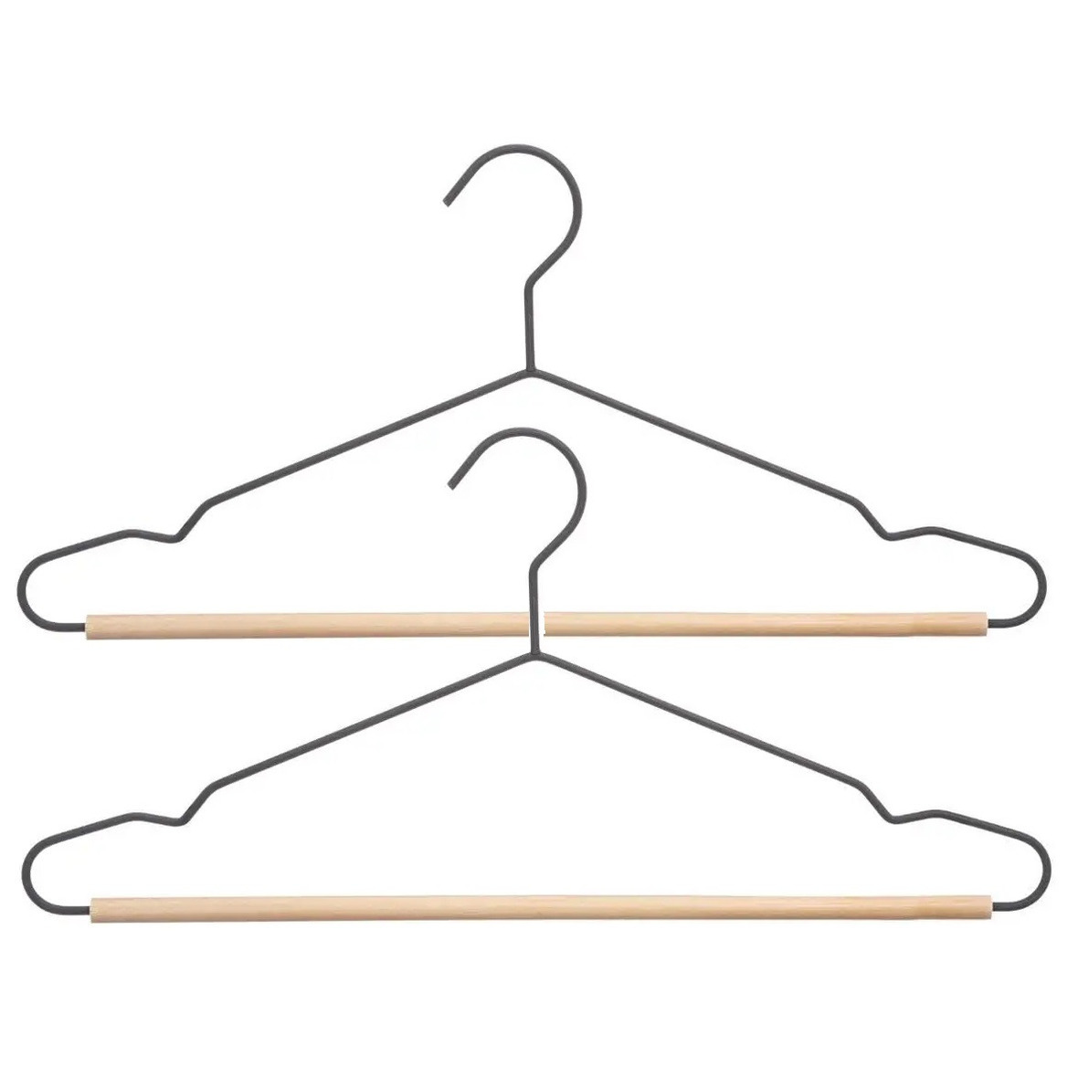 Set van 10x stuks kledinghangers metaal/hout zwart 44 x 19 cm. Kleerhangers geschikt voor volwassenen kleding. Met inkepingen die voorkomen dat kleding wegglijd. Kledingkast hangers voor overhemden/broeken/rokken.