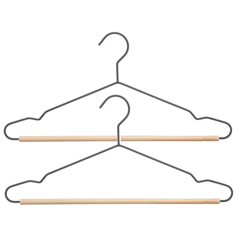 Set van 12x stuks kledinghangers metaal/hout zwart 44 x 19 cm. Kleerhangers geschikt voor volwassenen kleding. Met inkepingen die voorkomen dat kleding wegglijd. Kledingkast hangers voor overhemden/broeken/rokken.