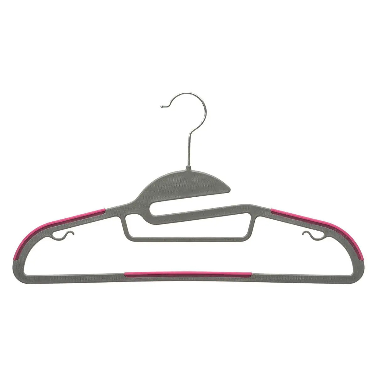 Set van 8x stuks kunststof kledinghangers grijs/roze 41 x 22 cm. Basic kleerhangers geschikt voor volwassenen kleding. Met anti-slip foam dat voorkomt dat kleding wegglijd. Kledingkast hangers voor overhemden/broeken/rokken.