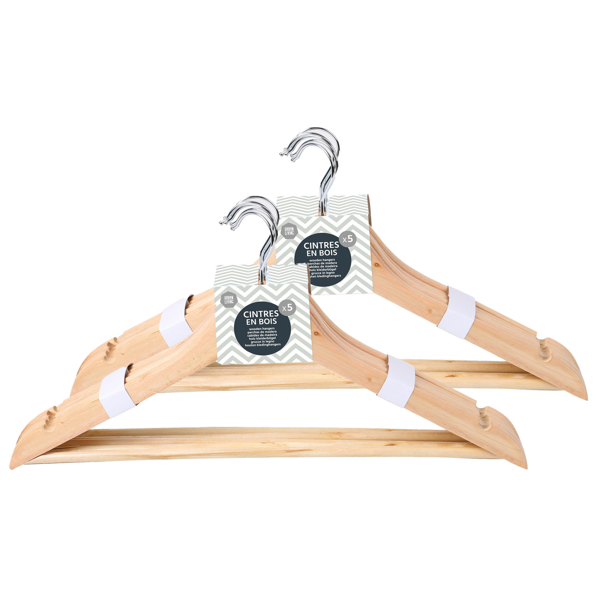 Urban Living Kledinghangers – met inkepingen en beugel – 10x – hout – 43 x 22 cm